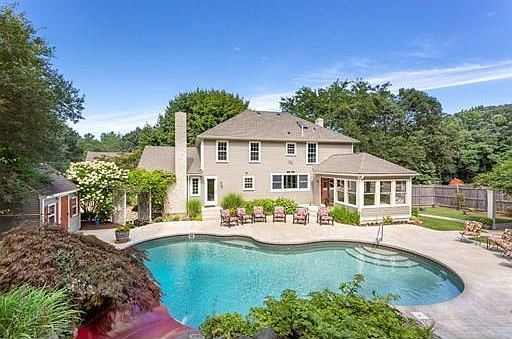 A graceful, architecturally designed backyard oasis is part of this beautiful home. This uplifting space soothes the soul. There's a pool with a playful slide, a magical garden, a rustic fire pit w/seating, a delightfully private side yard with a pergola, and still enough open space to set up a volleyball net. This property is the complete package. Plenty of space for everyone's interests, hobbies, and commitments. Let the extra love and care given to this home lift you up. Enjoy the enclosed porch that leads into an expansive open concept kitchen and family room. The chef of the house will love the 6 burner gas stove with an indoor grill supported by granite counters, an expansive island bar for serving meals and entertaining. Formal Dining Room, fireplaced Game Room, 1/2 Bath and Laundry complete the first floor. Hardwoods lead you up to the Master suite with a gorgeous tiled shower, double vanity, walk-in closet. Cozy finished basement welcomes you home every day. ENJOY.