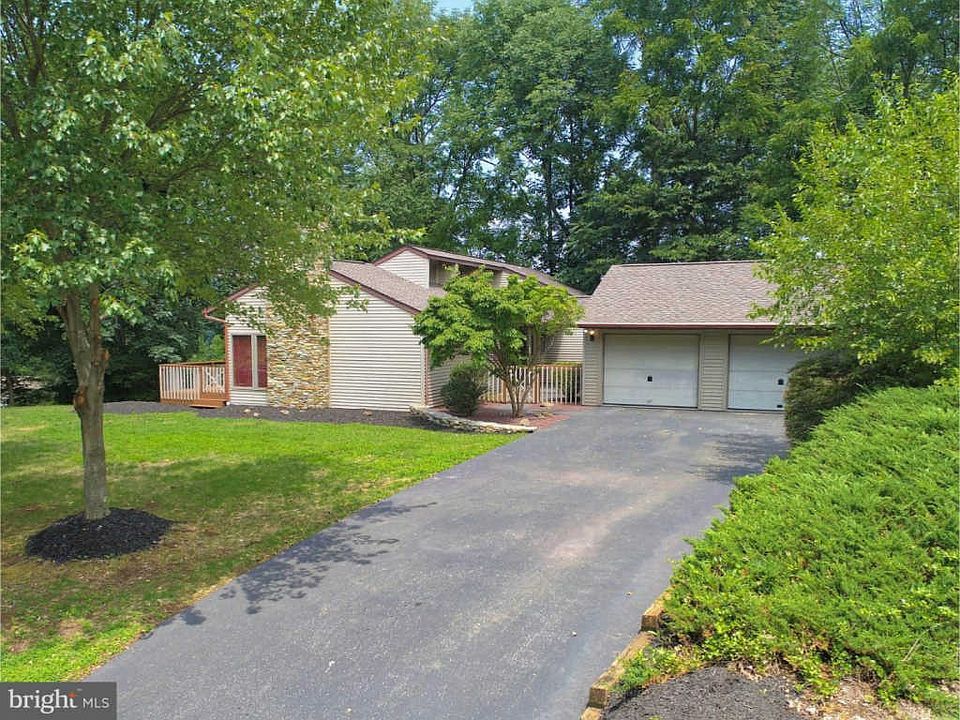 Back on the Market! The Buyers financing fell apart! This contemporary raised ranch home has an entertainer's floorplan and unique architectural highlights including; cathedral ceilings with transom windows, wood beam and ceiling, a sunken great room and more! All on just over 1/3 acre in beautiful Exeter Township! A nice large covered porch leads you to the double door entrance and into the foyer with high ceilings and a large closet. One step down to the left is the open great room and adjoining dining room with hardwood floors, a wood burning fireplace and a cathedral ceiling with transom windows flooding the space with plenty of natural light. Follow into the eat in kitchen with a large breakfast bar, pantry and ample cabinets. Step outside the glass doors onto the newly finished elevated deck with views of the beautiful landscaping. Down the hallway is the master bedroom with dual closets and an expansive master bathroom with a large shower. The hall bathroom and a second bedroom complete the first floor. Down the foyer staircase into the lower level featuring a large entertaining space with walk out glass doors to the back yard. An additional bedroom and full bath, a large 18 X 17 multipurpose room (potentially another bedroom) and a laundry/utility room are all on the finished lower level. This home has a large detached 2-car garage, Anderson Windows throughout, security system, newer roof with gutter guards, and convenient laundry chute! A quiet location near shopping, restaurants and major roadways! Don't miss this opportunity to call this place your home!
