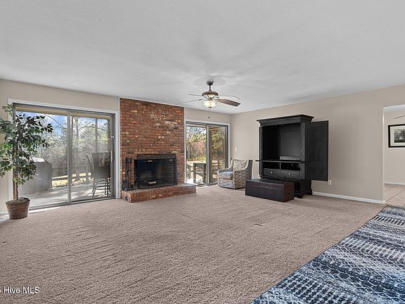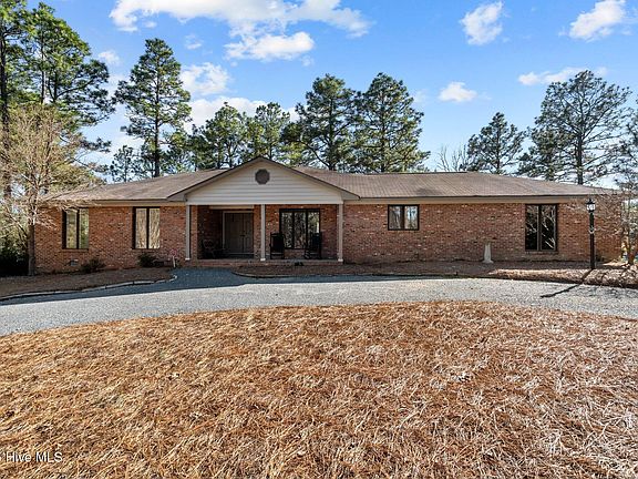 Tucked away on a quiet cul-de-sac, this brick 3-bedroom, 2-bath home offers nearly an acre of privacy with a view of the 12th green on the Foxfire East Grey Course. The spacious bedrooms provide plenty of room to relax & unwind, while the living area features a wood-burning fireplace, adding warmth and charm. Designed for comfort, convenience & entertainment, this home also features a large screened-in porch with a beautiful slate floor, a covered front porch, and a spacious back deck, perfect for enjoying the outdoors. The low-maintenance lot makes upkeep easy, & recent updates, including new appliances, add modern touches. Just minutes from Pinehurst, West End, and local amenities, & Fort Bragg only 35 minutes away, this home offers a peaceful retreat with easy access to everything you need!