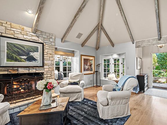 Welcome to "Lilliput Cottage" perfectly nestled in the heart of Carmel by the Sea. This exquisite residence was designed and built by master builder, Al Saroyan. This 1794 square foot home offers a thoughtfully designed living space, featuring three spacious bedrooms and two beautifully appointed bathrooms. Step inside to discover the warmth of the custom architectural finishes, hardwood floors, hand hewn beams and the inviting ambiance of two cozy fireplaces, perfect for relaxing evenings. The open layout seamlessly connects the living areas, enhancing the sense of space and light.