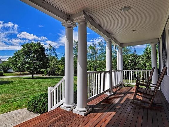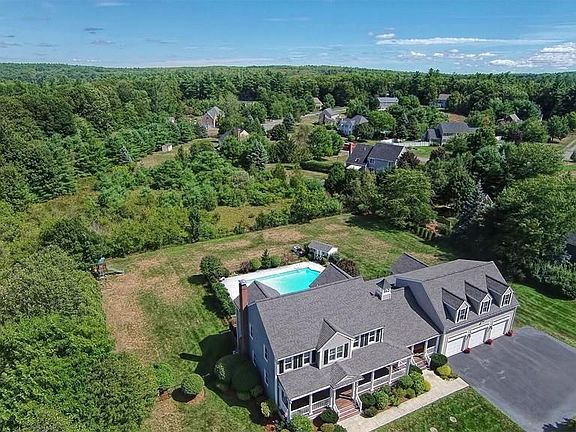 A Beautiful meticulously maintained home in the heart of the sub-division boasting a truly level lot, professionally manicured grounds, in ground pool with new automatic chlorine feed, fenced back yard, sprinkler system, farmers porch with mahogany deck and columns, 3 car garage and an impressive interior that is both a representation of sophistication, elegance, and comfort. The interior renovations were done in 2002 and include a cathedral ceiling game room with wet bar and family room with banks of windows allowing for an abundance of natural light, a bonus room above the garage, and first floor bedroom with adjacent full bath. Entire first floor, farmers porch, and exterior are wired for sound with built in speakers. Custom decorator blinds. 2 new pellet stoves. Wet bar with refrigerator in game room. Two full basements. Tons of storage.Town water. Picture perfect level lot which is very hard to find in Hopkinton. Just steps from Lake Whitehall. Resort living at home. 5 y/o septic
