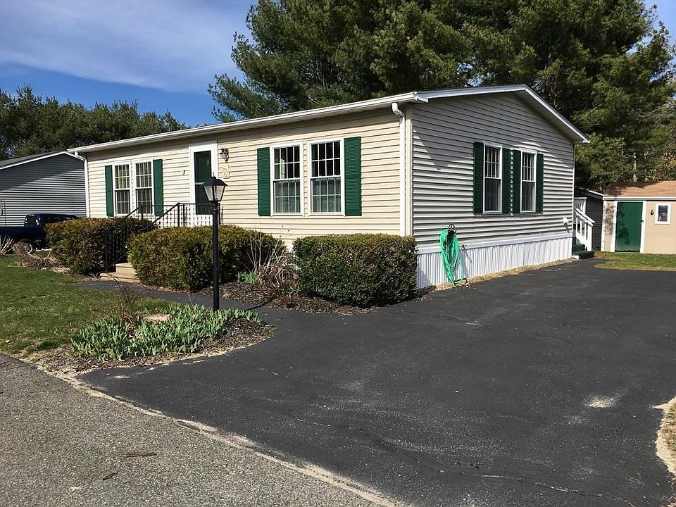 Waterview Village is a wonderful 55+ community, great modular home, 2 bedrooms w wall to wall carpeting, 1.5 baths, kitchen with updated appliances. Master bedroom with private half bathroom. newer refrigerator, dishwasher, washer and dryer, plenty of space with multiple closets, lovely details throughout , a shed for backyard storage,newer roof , Sit back relax .. enjoy the deck right off the kitchen. Central air and natural gas heating system. fantastic park clubhouse . monthly fee is $570 and pets are allowed..Home is in mint and move in condition.Walk to pond, buyers to get park approval ..Beautiful location to make your home at 4 Douglas Drive, Carver