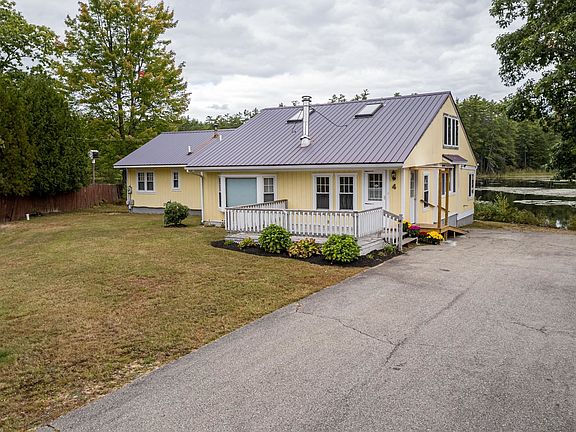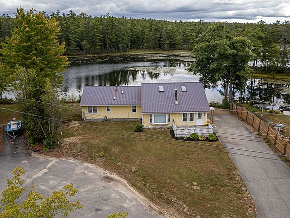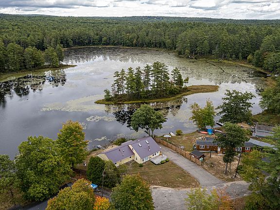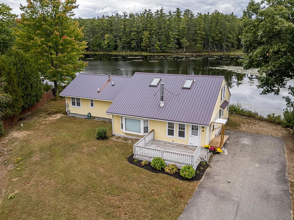 "Available again due to financing falling through." Experience the ultimate retreat with this rare opportunity to own a waterfront home on a level lot, nestled in nature’s sanctuary. Situated on Downing Pond, a serene 54-acre body of water fed by the Merrymeeting River as it meanders toward Lake Winnipesaukee, this property offers a tranquil escape surrounded by wildlife. Enjoy days of fishing or kayaking right from your doorstep. Perfectly located in New Hampshire’s Lakes Region, this home provides easy access to Lake Winnipesaukee, Gunstock Mountain, and nearby shopping, dining, and grocery options. Inside, the home boasts rustic charm with warm pine walls and ceilings, and unique cross-cut tree countertops in the kitchen and bar. Multiple entertaining areas feature stunning pond views, from the dining room to the family room with its inviting wood stove. Upstairs, you'll find ample storage space with windows and skylights, offering potential for future expansion. Outside, sliding doors open to a covered porch, waterside deck, and a spacious backyard with potential for a firepit ideal for relaxation and outdoor enjoyment. This two-bedroom, low-maintenance home is ready to be your perfect pondside getaway or permanent residence. Book your showing today! Financing "CASH ONLY"