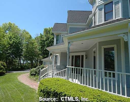 Hilltop retreat in beautiful setting high above Old Saybrook. Veiws to the CT River. Unique Victorian design is open yet intimate. Two-story entrance w/winding staircase,office,wrap-around porch.Master suite with balcony. Convenient to marinas and town!