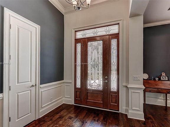 "Better than new" custom home in Hampton Hall! 2,673 sq.ft! 1-story, 4br, 4.5ba, 3+car gar., scr porch! Gourmet kitchen w/granite tops, GE SS appl w/wall ovens, 5-burner gas range, custom cabs w/pull-out shelves/soft-close drawers; hand-scraped HW floors, crown molding thru-out, coffered great room ceiling, gas FP, 4 tray ceilings, spacious owner's suite w/bay window, luxurious bath w/deep tub & huge shower; large bonus room w/full bath, raised granite vanities in all baths, two 15-SEER HVACs, foam insulation, central vacuum, paver patio & private wooded views on a quiet cul-de-sac street!