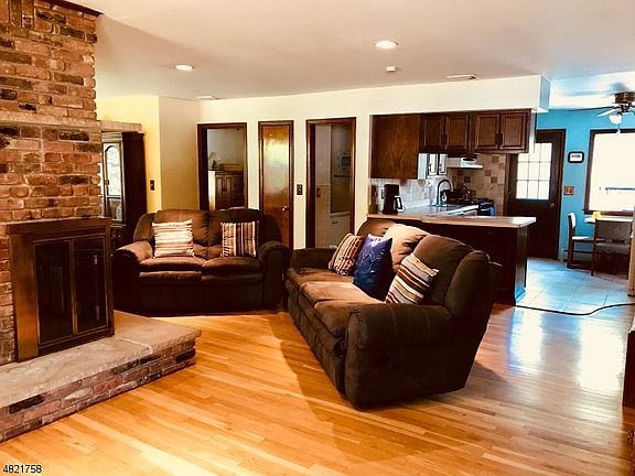 Open floor plan ranch with the views of Mt Glen Lakes on dead-end road. Hot water baseboard heat, natural gas utilities. Large garden shed Beautiful views from this well maintained home steps from the beach and lake. Three bedrooms with central air, hardwood floors, new windows, recessed lighting and a large two sided woodburning brick fireplace to enjoy during the winter. Lower West Milford location offers convenient commuter access.