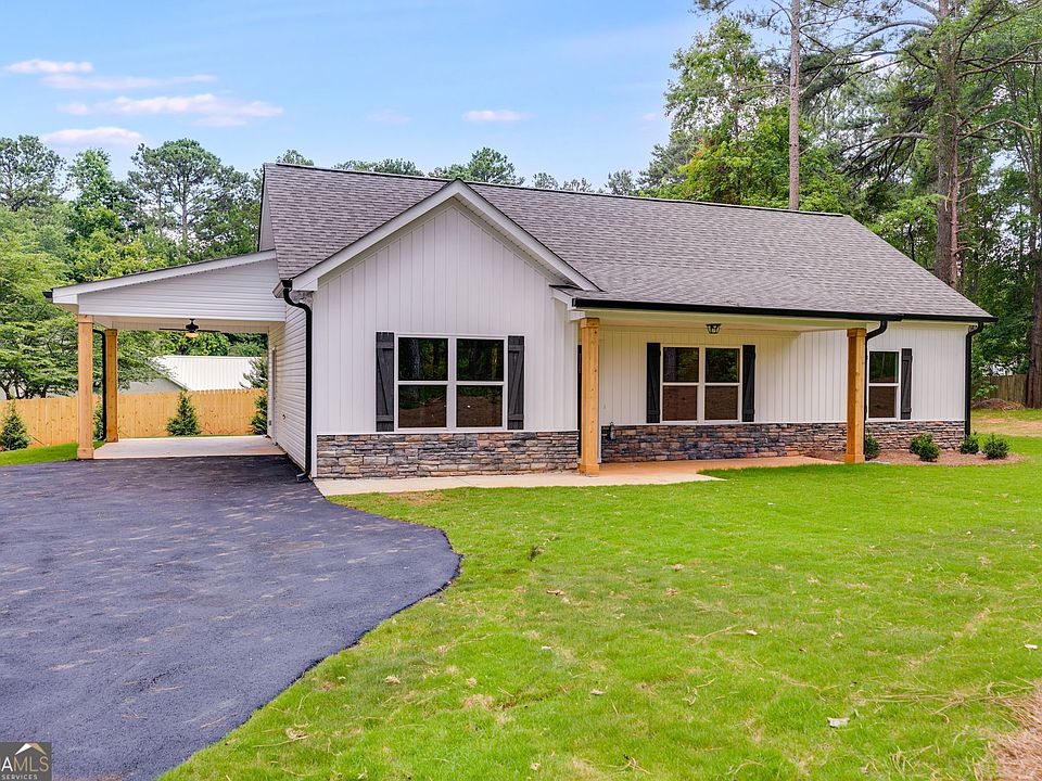 Construction is to begin soon! Do not miss your chance to own a 3.04-acre lush lot with NO HOA fees! This gorgeous step-less RANCH home boasts an open-concept design with a spacious VAULTED family room. The gourmet kitchen features GRANITE countertops, a FARM HOUSE SINK, a large PANTRY, and stainless steel appliances, perfect for entertaining. The large master suite offers a private retreat with a beautiful ensuite bathroom featuring a double vanity, custom TILE SHOWER & a generous walk-in closet. Two generous secondary bedrooms provide ample storage with large closets, complemented by a stylish full bathroom. Step outside to the covered back patio for your morning coffee, or relax on the rocking chair front porch. Standard features include beautiful luxury LVP in the kitchen, living room, entry, and baths; plush carpeting in the bedrooms; and high-quality finishes throughout. Enjoy the freedom of a PRIVATE LOT with no HOA restrictions, combining tranquility with convenient access. There's still time to choose your interior and exterior colors- make this house truly your own! Don't miss the rare opportunity to customize your future home in a peaceful, scenic setting. Minutes to Rockmart, Dallas & Hiram! Please be sure to ask about our incentives, using the seller's approved lender, Gareth Thomas, with Silverton Mortgage. Not quite the right floor plan? We have other options & LOTS available! Contact us today for further details!