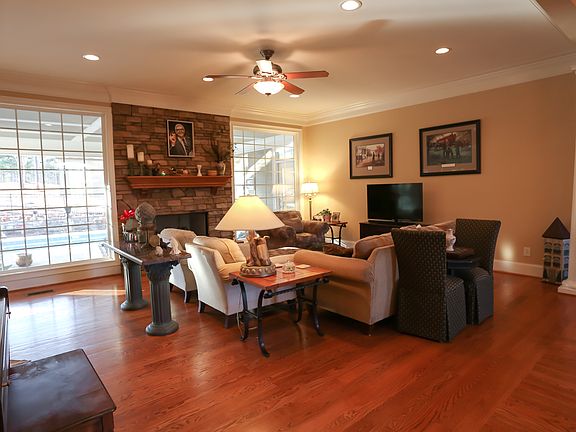 Custom-built, one-level dwelling built in 2006 situated on a cul-de-sac lot and overlooking the #3 fairway, Berry Wildlife Management area and Lavender Mountain. This home was built for those who love the outdoors with the beautiful veranda out back overlooking the octagonal, 10 meter pool with a sport bottom. Enter through the double doors to the formal dining area and open living area offering a gas log fireplace. Spacious office with built-ins. Large master suite offering those wonderful views, tongue & groove ceiling w/gorgeous beams, access to the back yard. A luxurious bath w/Italian Terrazzo stone, double sinks, double walk-in closets and shower. Transoms over doors, central vacuum system, 3- car garage, 2 separate heating and air units,