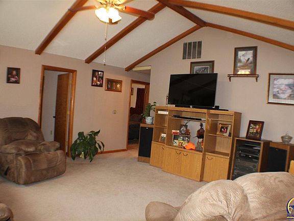 Spacious 2 bedroom 2 bath home located in the heart of Olpe ks. This beautiful slab home is located on a large corner lot. Built in 1985 this home has a large living area and large bedrooms.