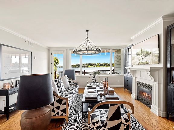 In the heart of the village a stunning one level condo with outstanding waterfront views, lake access and a Boat house to rent for your boat just steps away. It offers easy village living & the best of all worlds. A open floor plan with excellent craftsmanship, beautiful kitchen with oversized island, granite countertops, double oven, gas cooktop, stainless steel appliances,wine fridge ,large dinning area to entertain, livingroom with gas fireplace, large covered deck to enjoy the Lake views all seasons. The condo offers 3 large bedrooms with abundance of closets and a gas fireplace with walk in the primary,double sinks, walk in shower and majestic views. Laundry room in unit. The building was built in 2011, elevator, all updated mechanicals and completely springled, a storage unit, plus a 2 car tadem garage, plus the option of renting in the Boat house. What a perfect lock and go without the worries! Only to enjoy and make memories. Sorry no pets per HOA.