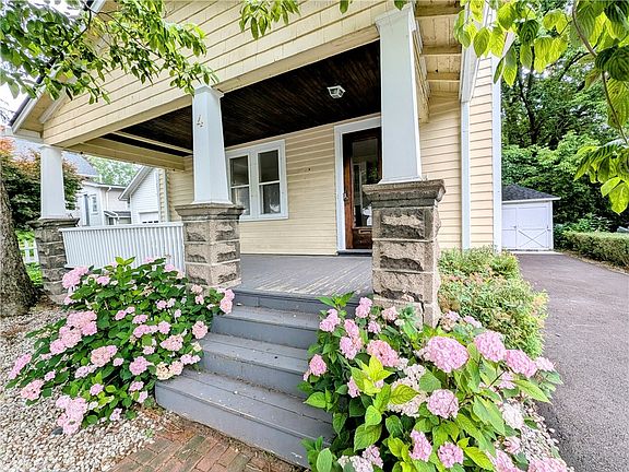 This 1926-27 Colonial home offers character and charm while at the same time offering a modern, fresh kitchen complete with Zline gas oven and Smeg refrigerator to suit the high-end minimalist who prefers quality over quantity. As you enter this home, you'll notice the refinished original pine floors which provide a rich warmth throughout the space. The built-in bookshelf with a mantel maintains a focal point in the spacious living room and provides a place to display some favorite memories, or holiday decor. Gather with guests for festive meals in the dining room after cooking up delicious gourmet treats in the beautiful and functional kitchen. Upstairs you'll find three bedrooms and a full bath, exuding the same charm as the main floor. This home is move in ready with the completely renovated kitchen, new appliances, character filled floors, brand new furnace and newly installed central air (2024), brand-new asphalt driveway (installed in the fall of 2024) and brand-new roof (summer of 2024), which help check the low maintenance boxes on your list! The basement, with newer washer and dryer, walk up attic, and garage provide plenty of extra storage and the yard is small and convenient as well. This home is ideal for those who love village life, walking to restaurants, shops, music nights at the canal and all the festivities the village of Pittsford has to offer year-round! At this price, in Pittsford Village, this won't last long, so please make your appointment today!