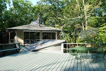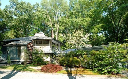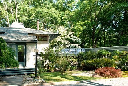 Exceptional contemporary with view of Honey Lake. Let every day feel like a vacation! Soaring ceilings, tons of windows, skylights and more. Views of woods and pool from several rooms. Custom built-ins, open floor plan and cool garden room. Beautiful hardwood floors, roof deck and gazebo.