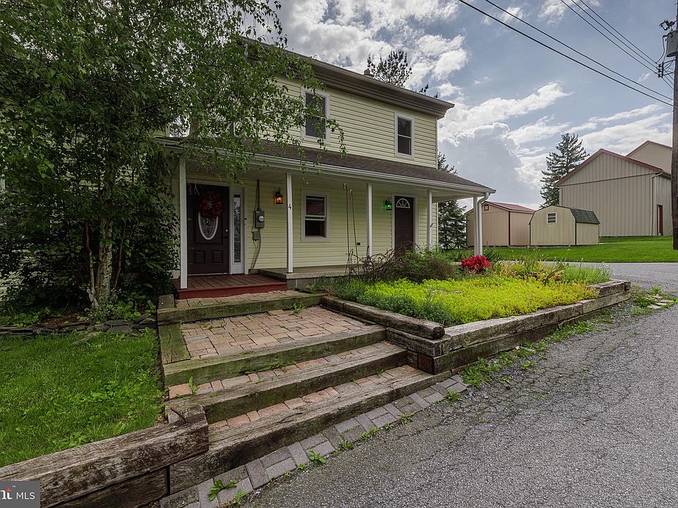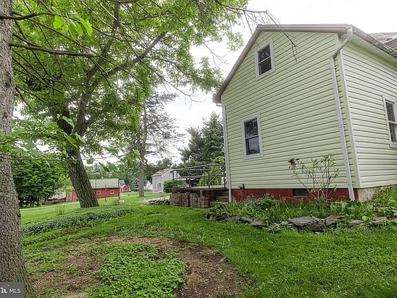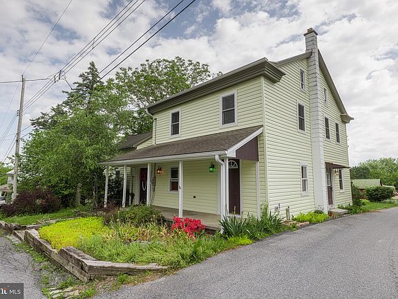 This historic home in the village of Mount Aetna started as a one-room log cabin built at the end of the 18th century. Some decades later it was expanded into a two-story farmhouse with a large attic. The detached summer kitchen was joined to the house via a main front entryway recently. One bedroom has a privacy violation. The upstairs foyer is large enough to accommodate a bed or large desk or TV room. The large attic provides a huge area for storage. The office/den could be used as bedroom, although it has privacy violation for bedroom upstairs. The house has been newly outfitted with an entirely new hot-water heating system. Kitchen appliances and washer & dryer also recent. The house needs a bit of work to finish planned renovations, but you can move in now and work on it while living here. The detached garage holds two cars and a large workshop with even more storage above in a loft space. Behind garage is a chicken coop. The large yard can accommodate a generous garden for people interested in growing food or flowers.