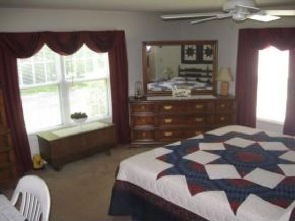 VERY PRIVATE, Serenity awaits!!! Sunny & Bright manufactured ranch on a full foundation with a over sized garage under.Includes all appliances Sunroom,covered porch & lg back deck overlooking wooded backyard.CENTRAL AC-55 + Hilltop Co-Op. You will LOVE this home.