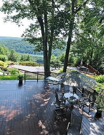Extraordinarily beautiful mountaintop retreat with panoramic views of Candlewood Lake and the hills and valleys beyond. Architecturally-designed home built in 2003, with top-of-the-line materials and detailing. Exposed log beams, massive stone fireplace, multiple built-ins and mahogany decks. Two master suites, Separate heated studio. A house full of serene beauty and warmth.