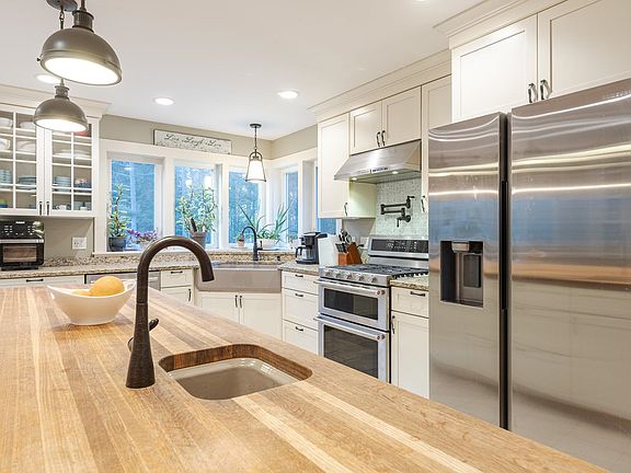 Located in Walpole NH this well appointed raised ranch has room for the whole family and is close to the towns amenities but located on a large private corner lot with plenty of outdoor space to enjoy in any season. The deck is spacious and perfect for outdoor entertaining. A sun filled kitchen boasts a beautiful island with seating for 4, granite counter tops, a walk in pantry and a pot filler faucet! The large living room has vaulted ceilings, pretty mantle, wood stove and great wood floors. You will find 2 bedrooms and a office/study on your way to the master bedroom. The master bedroom features 2 closets (one is a walk-in closet) and the master bath has a soaking tub and walk-in shower. Natural light abounds throughout the house. In the walkout basement are 2 additional finished rooms perfect for a family room/ 4th bedroom or office space. Plenty of space for all your toys in the heated 2 story oversized detached garage with parking for 4 cars inside.