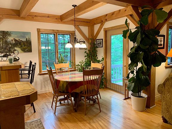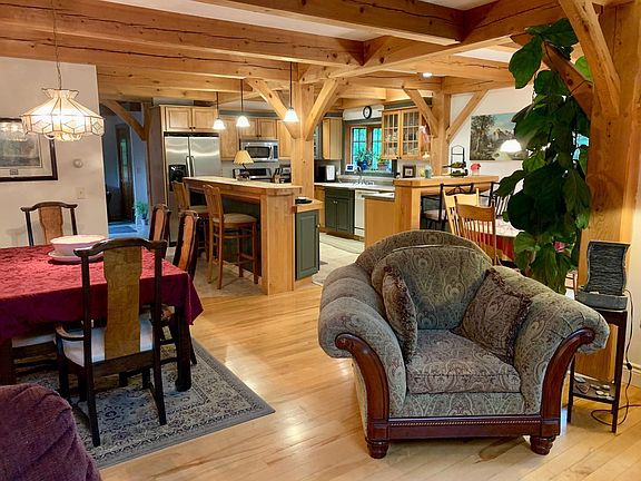 Well maintained and beautiful post and beam home on 3.11 acres. As you first walk in you feel the warmth of this inviting home. Open floor plan with vaulted ceilings with 3 stories of windows in the great room brings in so much natural light. This makes it a bright and airy room with the gas fireplace as a focal point. A generous kitchen for the chef of the house with a large island, birch cabinets, bar sink, cabinet and recessed lighting and open to two dining areas makes for great entertaining. Also on the first floor is the primary bedroom, an office and a 4-season sunroom with a soapstone woodstove to keep you cozy on those cold winter nights. There are two bedrooms on the second floor with a sitting area and a loft on the third floor. The walkout basement has so much space to roam, exercise room, home theater and bar area, with open space for the pool table. There is plenty of room for storage as well. Enjoy the view of the dam/waterfall while listening to the water sounds coming from the Lamoille river.