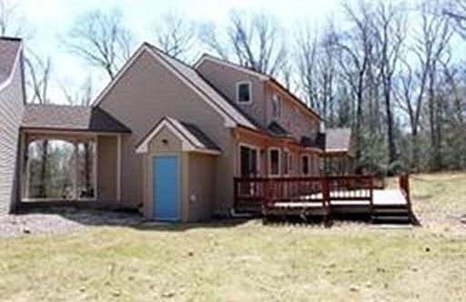 This lovely, well maintained Cape style home is on 5.66 acres in a private & desirable neighborhood. The house & garage are both generator ready! The wooded lot has a quiet, country setting & is only about a mile away from the center of town. Updated kitchen with granite counter tops & new cabinets with dining area. New hardwood floors & carpet throughout. Master bedroom with bath & walk in closet. 1st floor laundry room off of kitchen. Great family room has sliders to a 50' x 20' cedar deck w/ a 12' x 16' attached porch. All bedrooms have walk in closets. Partially finished basement, central air & vac, security system, lovely stone fireplace, wood/pellet stove hook ups are just a few of the great features this home has to offer. 3 car garage is extra deep with a utility sink, wood/pellet stove hookup, work bench & 220 volt service & 2nd floor walk up storage area.Large barn (28'x26') & shed with electricity. This home has been freshly painted & ready for you to move in & make it home!