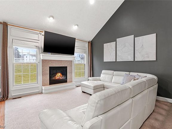 Welcome to this wonderful 3 bed, 2.5 bath home, located in Wakemans Edgewater Estate Condominiums. This bright & airy home features recent upgrades, captivating cathedral ceilings, and gleaming hardwood floors that greet you as you enter inside. Stay cozy in front of the living room fireplace with picture perfect windows on either side, showcasing the lush backyard and enjoy seamless flow to the open eat-in kitchen. This fully equipped chefs kitchen features ample wood cabinetry, stainless steel appliances, modern light fixtures, and a lovely dedicated dining space with sliding doors to the concrete patio. With plenty of options to relax, the formal dining room is currently being utilized as an additional seating area with french doors that open up to a perfect sized office on the other side of the wall. Enjoy everything you would need on one floor. The first floor master suite includes a large custom walk-in closet, full bathroom with dual sinks, and plush carpeting. A convenient laundry room with newer washer & dryer and half bath completes the first floor. Additional 2 bedrooms including a potential second floor master suite are placed upstairs with a sizable loft. Other features include freshly painted neutral walls, ample curb appeal, an attached 2-car garage, prime location, and more. Dont miss out and schedule your private showing today!