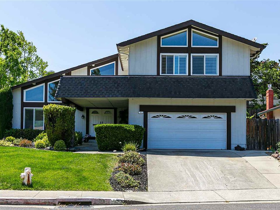 Picturesque contemporary-style home on corner lot with no neighbors on one side. The eat-in kitchen boasts an open concept to family room complete with fireplace & patio access. With 2 pantries & granite counters, there is ample kitchen space. Light & bright living room with expansive cathedral ceilings & grand plantation shuttered windows. Adjacent formal dining room shares high arched ceiling & connects to kitchen. Upstairs find the master suite with vaulted ceilings, large beautiful windows & sliding door to balcony covered by plantation shutters. The ensuite bathroom boasts an oversized tub. Find 3 additional bedrooms & bathroom plus a bonus room perfect for office or playroom on the 2nd floor. Large backyard boasts convenient artificial grass & patio perfect for entertaining. Garden boxes & terraced backyard are primed for gardening endeavors. Walking distance to 12 years of schools. Close to Contra Costa Canal Trail, Paso Nogal Park, and freeway access. Under 4 miles to BART!