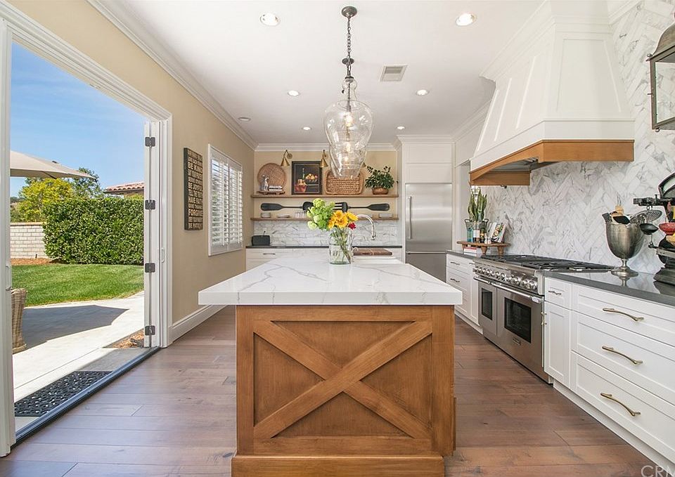 One of the most stunning homes in the desirable Tapestry Tract! Wonderful entertainment home on a private 10,000 sq. ft. lot with pool and spa and So. West facing sunset and golf course views. This approximately 3800 SF, 5 BR/ 4BA home is fully remodeled with a state of the art custom kitchen that features an 11-foot Quartz island with brand new Thermador professional series appliances, intricate Calcutta backsplash and a custom hood. The kitchen is custom designed with open shelving for quick grab table setting for family & entertaining. This unique open kitchen concept features a "Back Kitchen" with second refrigerator, custom built-in pantry, desk area and a coffee bar. A decorator designed laundry room with rare âstamped cementâ tiles, custom Shiplap woodwork is a must see! This functional modern home upgrades include hardwood flooring throughout, new base moldings, detailed case and crown, plus solid hardcore interior doors throughout, plush carpet in upstairs bonus room and fresh decorator paint. New Lennox AC units and Tankless Water Heater compliments this beautifully upgraded home. This is walking distance to the Blue Ribbon Wagon Wheel Elementary with crossing guards at the private So. Coto Gate. Golf, Tennis and Spa facilities are available at the highly acclaimed The Coto de Caza Golf and Racquet Club. This home is sure to please the pickiest home Buyer!