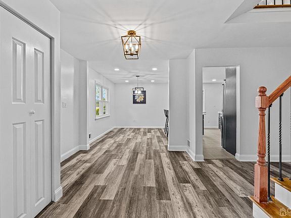 Welcome home to this Stunning Colonial! House has been renovated with new LVP flooring on the main level, beautiful gleaming hardwood floors upstairs. Brand new windows. Absolutely gorgeous completely renovated kitchen with tile floors, 42 cabinets, Quartz counter tops & an Island, backsplash and Stainless Steel Appliances. The first floor flows into a very large spacious Living Room, Dining Room, Kitchen, Family Room, Laundry Room, Powder Room, and Utilities Room which leads to an attached one car garage with automatic opener. The beautiful hardwood staircase with metal spindles leads to the upstairs with 4 bedrooms, a brand new fully renovated hallway bath and a good size master bath. The all fenced in backyard provides perfect privacy for those barbecues with a covered patio and a storage shed. The whole house is freshly painted. Brand new A/C unit in 2024. Nothing to do here, just move in. Must see to appreciate! Convenient to all highways, places of worship, transport and in a great School district.
