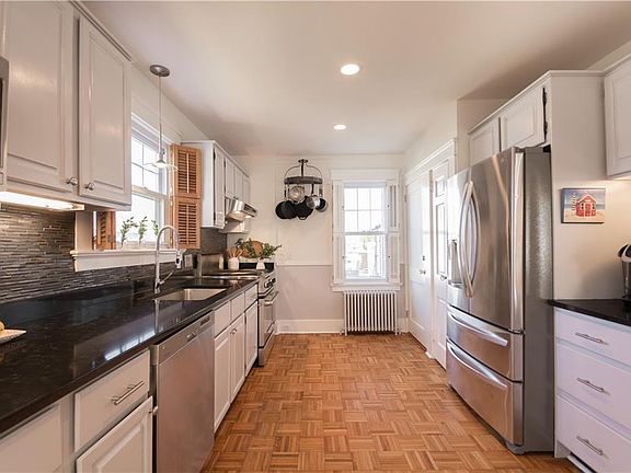 Located on a quiet street in the beautiful Kay/Catherine area of Newport, just a few short blocks from Eastonâs Pond. This 2,400 square foot home has many original features honoring its authentic Rhode Island history. From traditional, defined rooms designed to be warm and welcoming, to French doors, triple moldings, high ceilings and a carved wooden mantle framing the fireplace, you'll find architectural details seldom found today. Bonus amenities include a finished basement with built-in bar imported from England, a fully fenced yard with deck for entertaining, off street parking for four cars and oversize garage. Walk along the pond all the way to the beach!