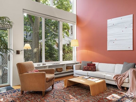 A warm and bright 4 BR 2.5 BA townhome in Hvd Sq provides a tranquil private setting throughout in the bustle of a perfect location. Steps to Main Library, Brdwy Mkt, MBTA, Hvd Sq shops. Custom designed and lovingly updated in 2011 with attention to comfort, style,and detail. Open living areas include dramatic LR with vaulted ceiling and huge clerestory windows DR and reconfigured kitchen with natural Maple cabinets and granite countertops, all overlooking private patio. Light and lush green views abound throughout with oversized windows. A true oasis. On 2nd lvl are two spacious BRs on half levels and updated shower/bath. In-unit W/D. The 3rd flr boasts a large MBR / ensuite BA with steps to a large rfdeck. On lower level is recently added half bath and 4th BR, Garage. Kitchen/2.5 Baths updated 2011, Morso Wood stove, Pella windows, 4 AC mini splits installed. Many more updates. (see attached documents) Well run, established 18-unit association.Lovely landscaped courtyard to enjoy