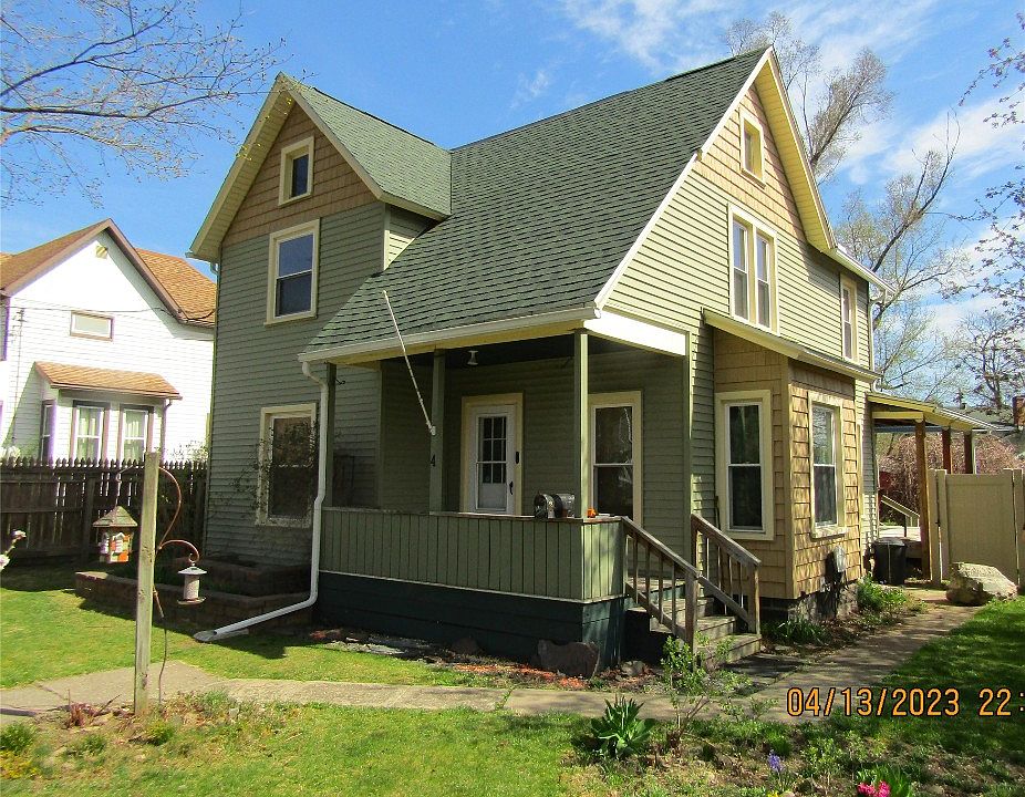 Affordable quant village Victorian charmer with Picturesque gardens and fruit trees. Relax by the coy pond in complete privacy or entertain on the deck or the two porches. This home boasts wide plank floors, a stain glass window, and lots of charm. With a little sweat equity this  3 bedroom 2 bath diamond will shine. Newer roof (8 years), replacement windows, vinyl siding, and updated electric.  Kitchen needs some updating but has new refrigerator as well as  newer gas range and dishwasher. Partially finished attic is great for storage or play space. This conveniently located home has it all.