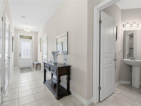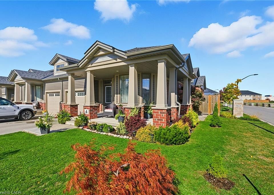 Welcome to this gorgeous freehold (no condo fees!) bungalow townhome located in the peaceful & exclusive community of Merritton Commons. This beautiful end-unit offers added space, privacy, & an abundance of natural light, thanks to its unique position & extra-wide lot. Joined only at the garage, you have access to the backyard from the garage, sliding doors in the living room & a side gate. Step onto the charming wrap-around front porch & into a bright, open-concept layout featuring 9-foot ceilings, a gas fireplace, & oversized windows that fill the home with warmth & sunlight. The spacious living & dining areas are wider than standard interior units, offering plenty of room for entertaining & everyday living. The kitchen is both stylish & functional, complete with granite countertops, ample storage, & a generous eat-in breakfast bar—perfect for casual dining. With 2 bedrooms & 2 bathrooms on the main floor, plus an additional bedroom, den, family room & bathroom in the finished lower level, this home provides flexibility & comfort for families, guests, or multigenerational living. Downstairs, you’ll also find a large unfinished workshop/utility space & an enormous cold cellar tucked beneath the wrap-around porch—ideal for storage. Professionally landscaped & meticulously maintained, this home exudes pride of ownership & is truly move-in ready.