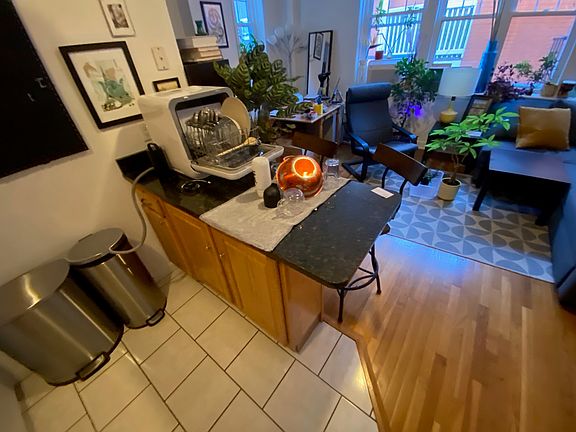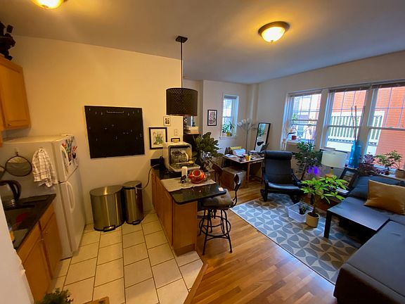 Beautiful sun filled one bedroom in a a small 4 story building. Open Plan kitchen and living room combo - Good size bedroom will fit a queen bed. Hardwood floors- Laundry in the building next door- Heat and water Inc- Parking for extra $ 100 - Cats ok- Movein anytime between January 15- February 1