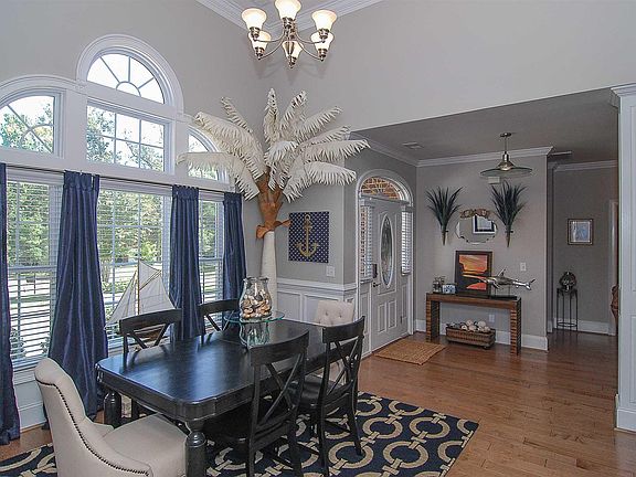 Stunning ALL BRICK home located in CUL-DE-SAC. New HARDWOODS. Large OPEN floor plan with HIGH ceilings. FORMAL DINING room with judges paneling with HEAVY TRIM PACKAGE. Living room has GAS FIREPLACE and wired for surround sound inside and out. French doors lead to SCREENED in patio. Kitchen features SOLID WOOD cabinets, GRANITE counter tops, eat in area and WALK IN PANTRY. Large LAUNDRY ROOM with lots of CABINETS and WASH SINK. SPLIT PLAN with Master Suite on one end. Dual vanity, jet tub, separate shower, water closet and walk in closet. 2 bedrooms on opposite end. 4th bedroom/Bonus Room over garage with a closet and a full bath. Attic STORAGE. Lean-to added off back of garage for EXTRA STORAGE. EASY ACCESS to your boat with Lighthouse Marina around the corner, just a golf cart trip away. You don't want to miss this home!