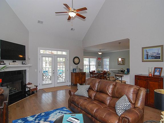 - Living Room: Fireplace, Floors-Hardwood, French Doors, Ceiling-Vaulted, Ceilings-High (over 9 Ft), Ceiling Fan