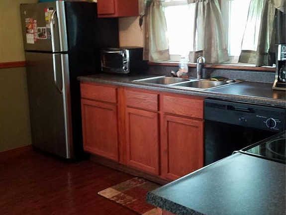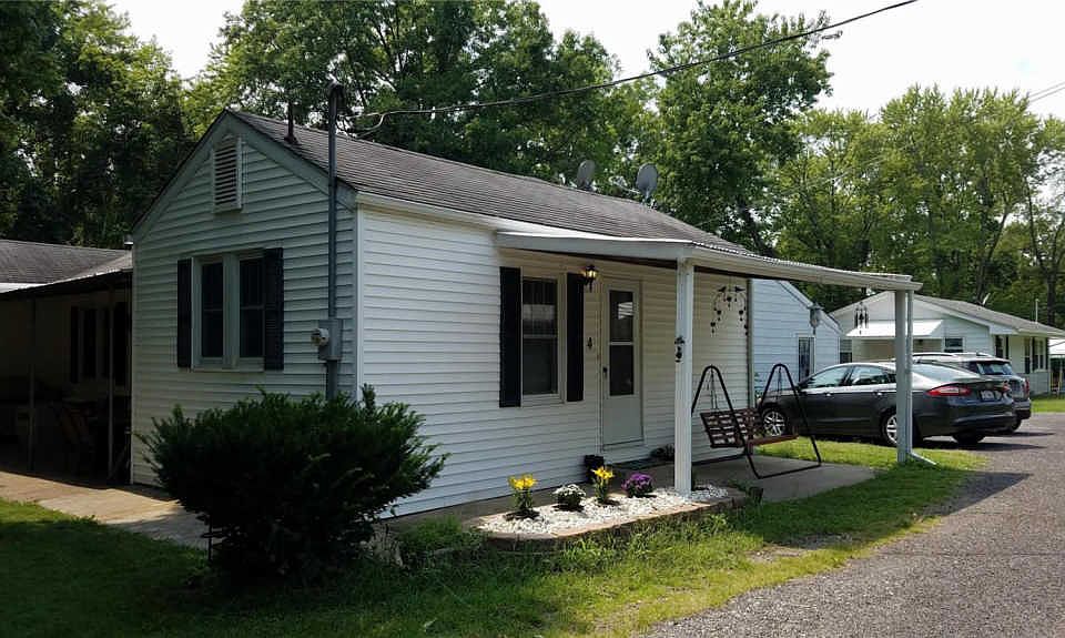 Don't let the appearance of this home fool you!!! It is over 1100 square feet, with 2 bedrooms, full dining room & living room. Nice updated kitchen with Stainless appliances and boasting a breakfast bar. Living Room has a wonderful wood burning fireplace and is open to dining area. Spacious bedroom and ample sized bath with full tub/shower. New Vanity & Stool. Lots of windows for plenty of light!The wonderful 8 X 28 attached, covered patio on West side of home is great for family get-togethers & bbq's. This home is nestled in the middle of a large surrounding yard, banked by rear trees to insure plenty of privacy. Located down the hill from street level.Priced to sell. Make an appointment to see this one!!!!