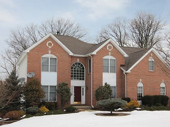 Welcome to this Cornell model located on a cul-de-sac in the sought after subdivision "The Woods" in Long Valley by Toll Bros. This 9 room home features a 1st flr office, 9' ceilings, hdwd flrs, extensive moldings, and 2 story foyer. Kitchen features a center isle, gas stove w/grill, tile back splash, pantry and tall cabinets, doors to custom TREX deck. An abundance of windows makes this a light bright home. The greatroom features a gas FP, skylites, cathedral ceiling w/2nd staircase to BR"S. luxurious MBR suite w/full bath and lrg WIC; full WO bsmt w/french doors and windows. 1.28AC property w/room for a pool. HOME WARRANTY. NEW ROOF 2014. Light filled home with southern exposure. Cul de sac.