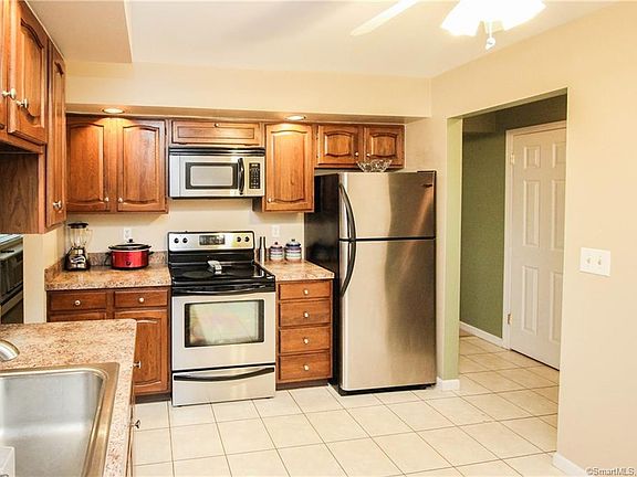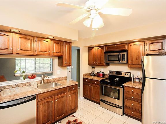 Great opportunity to live in this spacious and updated 1 bedroom end-unit apartment in the desirable Rollingwood complex. This beautiful unit offers an updated kitchen with stainless steel appliances and a dining area. The dining room has access to the deck and an attached desk that can also be used as an office/den. The spacious living room gets an abundance of sun light. The large bedroom offers a walk-in closet. Laundry is conveniently located inside the unit. The unit offers plentiful closet space and there is additional storage space in the lower level of the building. Rent includes heat and hot water. There are plenty of parking spots in the complex. The community offers a pool and a tennis court and is conveniently located to Federal Rd, I-84 & Rt. 7 and all the shopping and restaurants. Pets are considered on a case by case basis. Good credit a must. Non-smoker please.