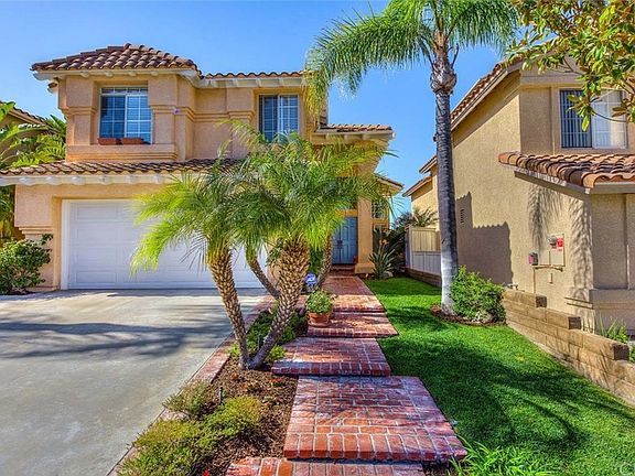 This incredible model home is located in the marvelous hillside village of Foothill Ranch.You will fall in love with the brick accents,walkways & tropical landscaping that this beautiful home has to offer.With 3 impressive bedrooms,2.5 baths & approx. 1,870 sqft, this home boasts exquisite interior architecture,gorgeous, light-filled rooms,designer upgrades & custom built-ins.The inviting entry w/soaring ceiling,stunning Italian travertine floors & walls of windows that infuse natural light.The chef in your family will delight in the remodeled kitchen,which boasts handsome dark wood cabinetry,top-of-the-line stainless steel appliances,French sink with a water filter,breakfast nook w/custom seating bench & table that make for a truly fantastic kitchen & dining experience. Custom appointments include crown molding, upgraded baseboards,upgraded light fixtures,new carpeting & upgraded bathrooms & fixtures w/marble & travertine accents.The perfect place to relax,the master suite features a remodeled bathroom w/a luxury floating vanity,marble backsplash & shower.French doors lead to a romantic balcony w/stunning panoramic views & the tranquil backyard w/stone patio,soothing water fountain & grassy area perfect for entertaining friends & family.HURRY, WONT LAST!