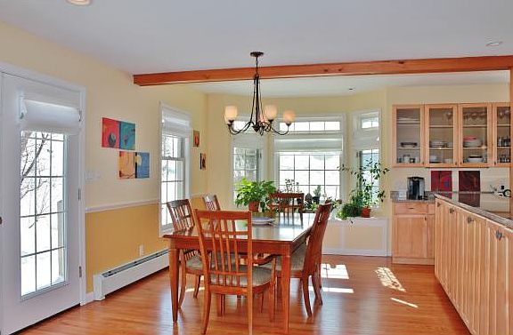 Quintessential warmth with the perfect balance between neighborhood charm and the peaceful country life. Sit on the large deck and look over the abundant yard space, so nice for sledding or romping with pets. The 1st floor delivers one of the brightest, most cheerful kitchen & dining spaces we have ever seen! All rooms work together to bring in the outside feel by taking advantage of the open local view. The 2nd floor has a very spacious master bed & bath with separate tub & shower plus two delightful bedrooms and an enormous family room with a grand vaulted ceiling, perfect for anything from a weekend pizza party to a spot to practice on your grand piano. Charming, charming, charming!
