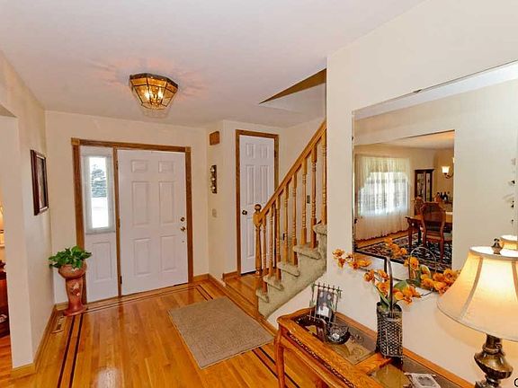Meticulous is what best describes this side hall partial brick colonial situated on an over-sized premium cul-de sac lot. HW flrs throughout. Eat in kitchen overlooks nice fam rm w/ wood burning FP. Newer windows, newer roof, newer h20 tank, & upgraded appliances. Beautiful deck w/ AG pool overlooks ball park sized lot w/ plenty of room for family reunions. Updated tiled full baths. Fin bsmnt features rec room and office area with plenty of room for storage. Walk to the Crossings or local farm for ice cream