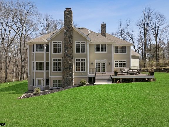 Captivating Country Colonial Becomes Available at Stone Row at Hickory Run Drive the rolling country roads of Hunterdon County. Pass farmsteads, and wooded hills seemingly undisturbed since the beginning of time. Cross a historic stone bridge to arrive at Stone Row at Hickory Run. The land, once one of the area's sizeable farms, is now a hidden gem comprising three cul-de-sacs of unique country farm inspired colonials--each on at least five acres. Beginning at the cul-de-sac, a long driveway continues through a passage of woodland to arrive at this privately set, four-bedroom, four-bath custom home. Like all the residences which comprise this 19-home community, there is a link to the area's agricultural past and present. Though built as recently as 2005, the attached three-car garage bears a whimsical likeness to the barns having long dotted the landscape. HardiPlank and stone envelope the exterior. The two-story foyer gives way to 9-foot ceilings until dramatic height re-appears in the double-height Family Room. The stone fireplace soars to the ceiling. Large, stacked windows flank its sides emphasizing the rooms vertical volume. The open floor plan continues to the kitchen with custom cabinetry, granite countertops, an island with raised dining bar, walk-in pantry and superbly branded appliances. The spacious breakfast area includes a wet bar and French doors opening to the Trex Deck. French doors also appear at today's all-important office. The light-filled space includes a walk-in window bay and double window with transoms. Two double-door closets will readily accommodate the inevitable office accumulation. The formal Living and Dining Rooms are selectively adorned with crown molding, tray ceiling, windows topped with transoms, walk-in window bay. Oak hardwood floors continue from the main level to throughout the second where the Primary Suite may well be a dream come true. Double doors open to the bedroom with tray ceiling, multiple windows and two-sided fireplace shared with the inviting Sitting Room. The Dressing Room, larger than one may have dared wish for, sports four walk-in closets. The sizeable bath hosts two vanities, oversize frame-less glass shower and jetted tub. Another bedroom is en suite with bath and two bedrooms share a dual bath. Offering high ceilings, multiples of daylight brimming windows and a walk-out to the grounds, the unfinished lower level is a rich palette for a new owner's needs and creativity. Among the additional welcome features of this residence are: foyer and back staircases, upgraded lighting, Andersen windows, abundant recessed lighting, energy-saving insulating house wrap, 75-gallon hot water heater, multi-zone heating and cooling. Wonderfully complementing this home's sizeable acreage is its shared border with Lebanon Open Space--an area comprising 70 acres of preserved land. Conveniently located to schools, shopping, major highways and Newark International Airport.