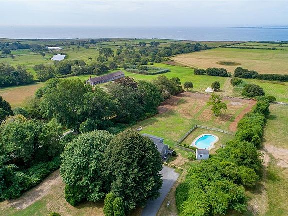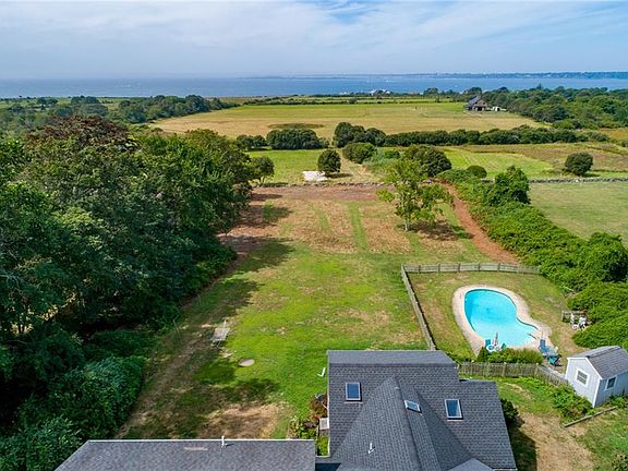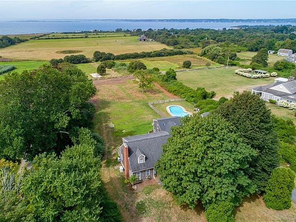 Classic Farm Coast property with beautiful ocean views over pastoral farmland with a sweet 4-bedroom Cape and a separate 1-bedroom In-Law addition, and a fabulous pool, all on 2 private acres, located in the south-west area of West Main Road. The first floor of the home features a light-filled open floor plan with a cozy fire-placed living room and dining room that opens on to the deck and kitchen. A first-floor bedroom with full bath, currently used as an office, offers a one level living option. A pantry and laundry area complete the first floor. The second level offers a generously sized primary bedroom with beautiful views, as well as the 3rd and 4th bedrooms and full bath. The 1,047 sq.ft. addition features a comfortable living room with picture windows and dining area, nicely sized kitchen, first floor primary bedroom and full bath, second level living room with amazing views, as well as separate laundry and private deck. The two-car garage connects to both homes. The private grounds with swimming pool and rolling lawns, surrounded by stone walls complete this one-of-a-kind property. Close to Sakonnet Point and all that Little Compton has to offer - beaches, boating, farm stands, and the Little Compton town center. This total gem won't last long! Make sure to check out the 3D Virtual Tour. Buyer pays Little Compton Agricultural Conservancy Tax at closing.