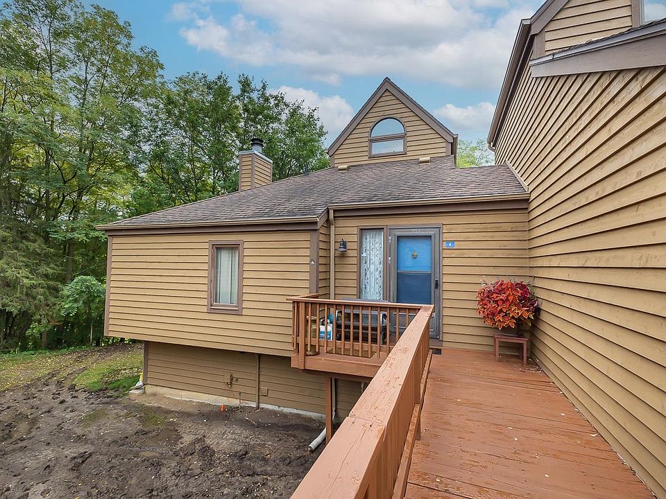 Nicely appointed end unit 3 bed, 3 bath Farmstead Townhouse offering great layout with a bed and bath on each level and a gorgeous setting featuring a beautiful, wooded backdrop, incredible privacy, seasonal golf course views of Eagle Ridge North Golf Course below, and even a seasonal peak at Lake Galena's Plum Cove from the main level deck! Main floor houses large living room with cathedral ceilings and woodburning fireplace with rustic wood plank surround, open dining area with direct access to rear deck, galley kitchen with plenty of cabinetry and counter space, comfortable guest bedroom with angular ceiling and wood beam accent, and full bath. Light and bright upper-level features spacious master suite with cathedral ceilings and more wood beam accents, elevated views of the surroundings, and private full bath. Retreat to the walk-out lower level to find a generous family room with bar space, access to lower-level deck and common ground area, additional guest bedroom, full bath, storage closet, and laundry/utility closet with full size washer/dryer. Sold furnished with some exclusions and to be transferred via a separate bill of sale. All this in a location within close proximity to Lake Galena and Owners' Club with indoor and outdoor pools, fitness facility, multi-sport gym, game room, outdoor tennis courts, and more! Just a quick trip to all the fine and casual dining, spa, and championship golf of Eagle Ridge Resort and Spa. Square footage is approximate and sourced from Jo Daviess County Assessor records. 2023 Galena Territory Annual Association fee of $1360 and 2023 Eagle Ridge Townhouse Association monthly fee of $315 apply.