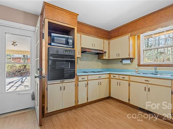 Back on Market and many repairs done from previous buyer's inspection. Rolling lot and level at top. Mature landscaping. Small fenced area. New HVAC heat/cool in 2020. Needs TLC and is being sold as-is. Located in Oak Forest in South Asheville.Windows are double paned and were installed by previous owner. Electrical updated to 200 amp after 2006. Natural gas to home.Basement has baseboard drain installed with sump pump (new pump 2022). Roof was replaced in 2008. Gas logs see through FP from living room to family room. Hardwoods in living room, and bedrooms refinished recently and new hardwood in dining. Flooring in family room and kitchen will need to be replaced. Kitchen and bathrooms are original. Structural work just done to basement per engineer design. Downspouts reburied, gutters cleaned, new basement well surrounds, backyard regraded, backyard reseeded, ceiling joist in living room fixed. Found buried oil tank while grading. Ask for copies of inspection and engineering report.