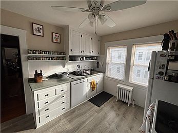 This charming unit has beautifully kept hardwood floors, a large living room with working fireplace, formal dining room with big bay windows that allow in an abundance of natural light. The kitchen has a gas range, dishwasher and disposal. Additionally there are 3 good sized bedrooms with big windows and closets, a full bath with tub/shower combo. extra storage in basement and off street parking may be available Laundry in building Pets considered case by case basis Available July 1st.