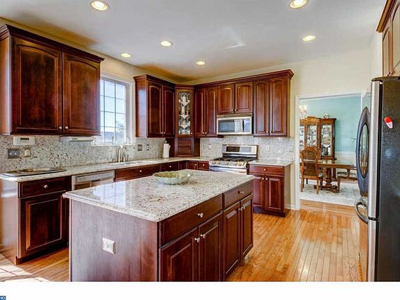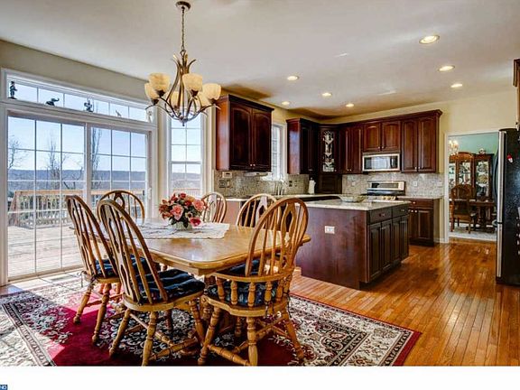 This exceptional colonial located at the end of a cul-de-sac offers mountain views into PA, a large deck off the kitchen and a beautiful gunite, heated pool with spa. The open floor plan offers over 3600 square feet of living space, ample storage throughout and a full basement with high ceilings that could be finished for additional usable space. Entering the home one is greeted by the sunny two story foyer that opens to the living/dining rooms to the right and an office and hall to the family room and kitchen. Hardwood floors are throughout the main level with the exception of the laundry room and the conservatory/sun room which has new carpet. The kitchen has been remodeled and features a center island, granite counters and backsplash, cherry cabinets, recessed lighting, large pantry and stainless steel appliances with gas cooking. The informal eating area is sizable and there are doors that open to the expansive rear deck allowing the living area of the home to be extended to the outside three seasons out of the year. The eat in kitchen is open to the family room which makes this space ideal for entertaining or day to day living. The family room features a wood burning fireplace and a second staircase to the upper level. The dining and living rooms are bright and sunny and enhanced with moulding. The living room opens to the large conservatory/sun room with walls of windows and a tray ceiling. Additional rooms on the main level include a formal office, another room that could be a fifth bedroom/office/playroom/den and a laundry room which leads to the large two car garage. The second floor of the home features newer carpet on the stairs and hallway, three spacious bedrooms, a full bath and the master bedroom suite. The master bedroom is large enough for a sitting area, has a walk in closet and a master bath to include a double sink vanity, jetted tub and a stall shower. During the summer months one can enjoy lounging by the gunite heated pool with spa that has been professionally opened and closed each season. The shed has electric and there is water nearby so one can easily water the garden. Additional features include: 2 heating & cooling units, generator hook up, whole house surge protector and invisible dog fence. This property is located in the Delaware Valley Regional School District and is close to Milford and Frenchtown, NJ and roads to I-78. Make an appointment to see this beautiful property and make it yours