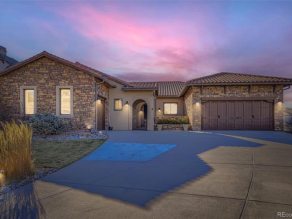 Homes like this CUSTOM RANCH rarely come on the market in the coveted BACKCOUNTRY neighborhood! Prepare to be captivated by the breathtaking MOUNTAIN VIEWS and TIMELESS CUSTOM FEATURES of this ONE-OF-A-KIND HOME, designed by the nationally acclaimed KGA Studio Architects. Nestled on a large, level corner lot, backing to open space, this meticulously maintained 4-bedroom, 4-bathroom home offers a rare opportunity to own a home where luxury and natural beauty converge. The private courtyard sets the tone for the stylish custom features, welcoming you into a light-filled sanctuary where every detail has been thoughtfully designed. The dining room features custom built-ins and opens to a covered deck that frames the open space and mountain views. The expansive great room with its high ceilings and wood beams flows seamlessly into the chef’s kitchen with custom cabinetry, Thermador appliances, a generous island, and a unique appliance garage and butler’s pantry. The primary suite features a spa-like bathroom with radiant heated floors—perfect for those chilly Colorado mornings, and 2 walk-in closets with laundry room access. Two additional generously sized bedrooms share a Jack-and-Jill bathroom—each room has a private sink and vanity. The main level also features a stylish powder room, a private office, and a secondary workspace with custom built-ins. The walkout basement is an entertainer’s dream with a large wet bar, complemented by a game/theater area and a cozy bonus-media room. Fitness enthusiasts will appreciate the dedicated workout room. A private guest suite with its own bathroom ensures that visitors feel at home. Step outside to the beautifully landscaped yard and expansive patio, where you can unwind in the saltwater hot tub w/TV, gather around the fire pit, and take in the Mountain Views and Colorado Sunsets. Homes of this caliber are a rare find in Backcountry, a gated community celebrated for its exclusivity, natural beauty, and exceptional amenities.