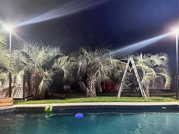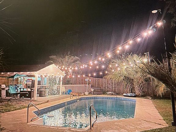 Inside the house is gorgeous with a cathedral ceiling, granite countertops, split floor plan, etc. The palm trees, pavilion and pool in the back make it a tropical paradise in the summer time. Quiet neighborhood in the county within a mile to gas and groceries. Dog proof yard for your fur babies safety!
