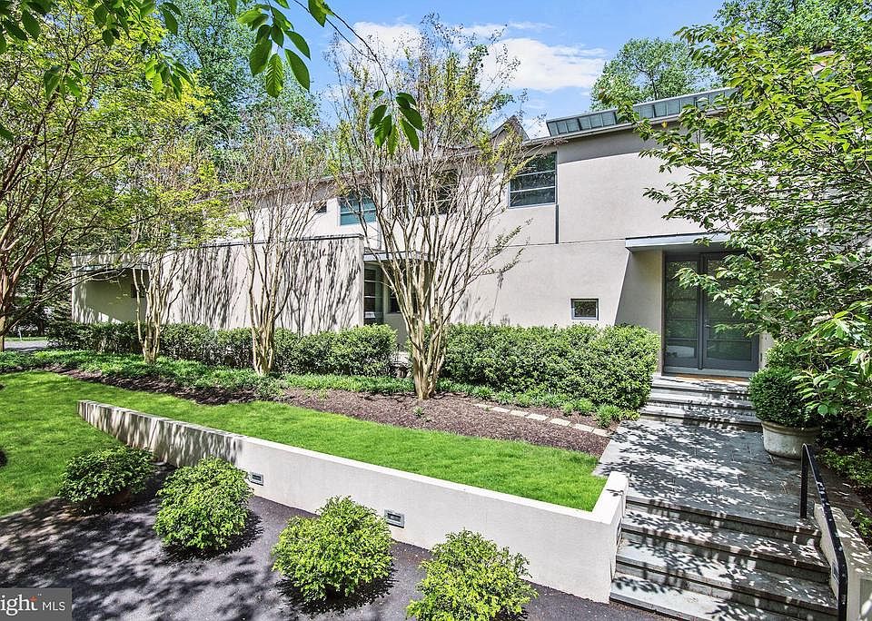 Timeless form rooted in modernity, this spectacular yet comfortably sleek home was designed, inside and out, by Steven Harris, an internationally renowned and award-winning New York architect, professor and author, and his firm. Harris describes his concept for Forest Bluff as ~three sliding boxes.~ Every inch of this home was thoughtfully and geometrically designed with finishes that support the concept. The custom front door sets the stage. Inside, the open floor plan invites in light from a wall of windows shared by the living and dining rooms, as well as from skylights that march along the upper hall and roof line. Comfortable spaces are warmed with custom floating cabinetry, hidden drawers and hardwood floors, balanced with bluestone, glass and metal finishes. The living and entertaining options are endless. Casually dine around an eat-in cook~s kitchen with professional appliances, island, breakfast bar, table space, and of course light from several sources. The adjacent family room is wrapped in custom built-ins and a bluestone fireplace with bench seating. Several rooms have access or views to the cantilevered deck, including the main-level study with pocket doors and two walls of built-in desking to accommodate work and study while enjoying compelling exterior views. Front and back staircases carry you up to the master suite, three other en-suite bedrooms with custom built-ins, and a generously-sized laundry center. The lower level is also bathed in light from window walls and two atrium doors that lead to a walk-out backyard and vegetable garden. Currently, the recreation room and fifth bedroom are being used as an art studio as the natural light in each space is truly inspirational. The light feeding the adjacent exercise room is similarly stimulating. The lower level is completed by a sixth bedroom, a full bath and a flex room. Every room on every level offers natural light above grade, adding value to square footage as well as to the quality of living experience. When you are in these spaces, you know you have encountered something that goes far beyond the standard, center-hall colonial. This home is simply magical!