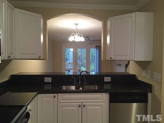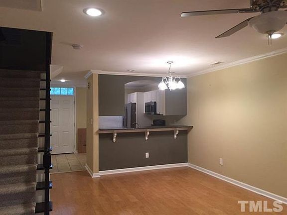 Great town home/condo in the beautiful Bradford Place community in Downing Creek. Upgraded interior with granite counter-tops, tile floors, stainless appliances & laminate hardwoods in the living area. Built-in TV stand with shelving. HUGE deck with built-in bench & tree lined back yard. Refrigerator, washer & dryer convey. Two bedrooms upstairs with walk-in-closet & built-in desk area. Unbeatable location, convenient to I40, Chapel Hill, RTP & RDU. Lots of community amenities, A MUST SEE!