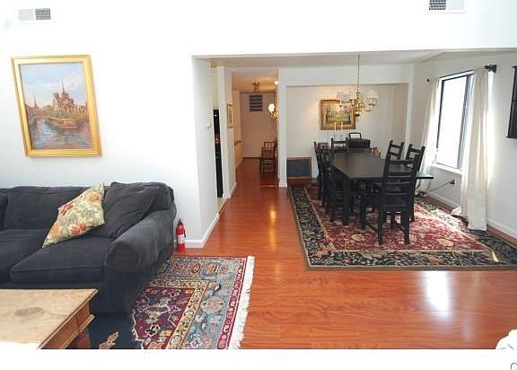Light and bright spacious 2-3 bedroom renovated upper unit. Gleaming wood floors, updated baths, vaulted ceilings, wood burning fireplace. Flexible floor plan. Master bedroom has updated en suite bath and walk in closet. Second bedroom and den/third bedroom share updated hall bath. Private terrace overlooking open space. Parking in front of unit and conveniently located garage. Really special!